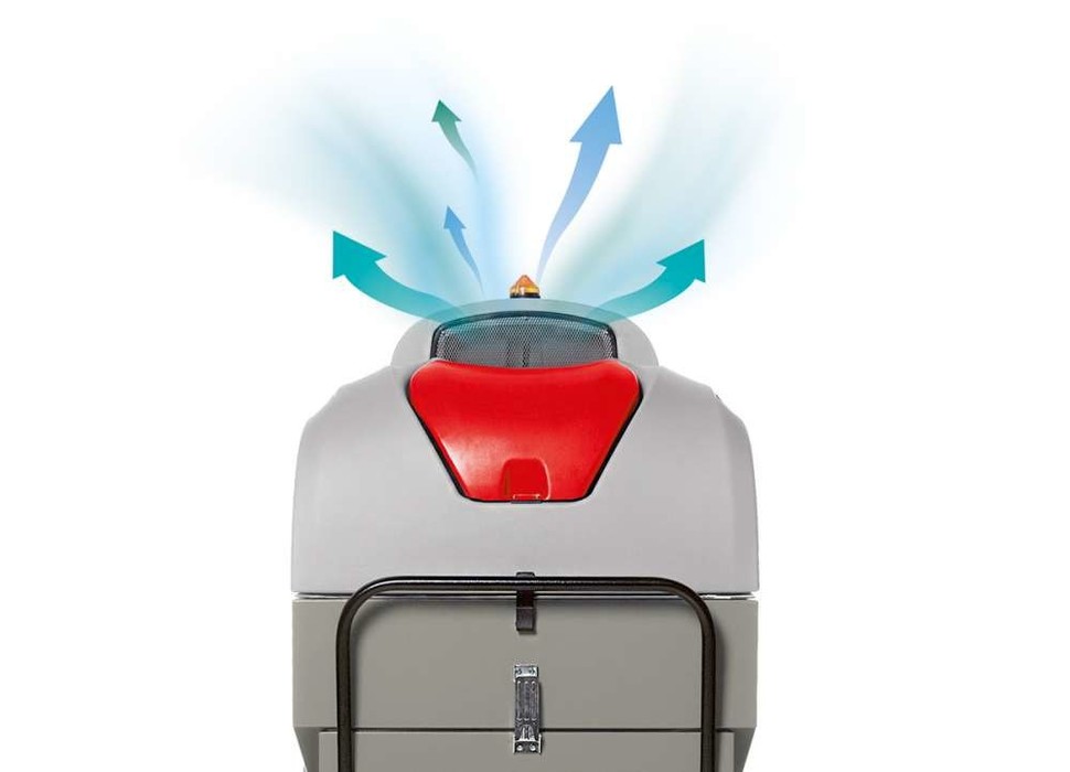 Usisani i filtrirani vazduh izlazi kroz visoko postavljenu zadnju rešetku, čime se sprečava podizanje prašine oko mašine i poboljšavaju rezultati čišćenja