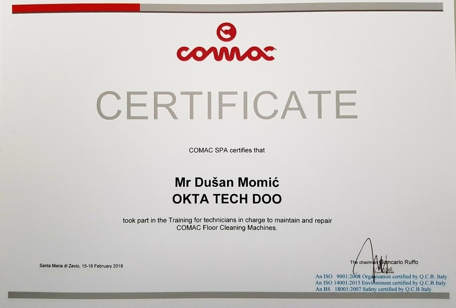 Naša ekipa servisera prisustvovala je obuci za održavanje i servis Comac mašina od 14.02.2018. do 17.02.2018.