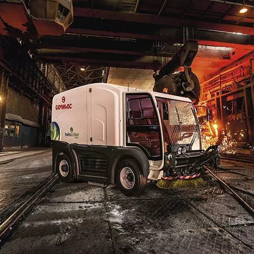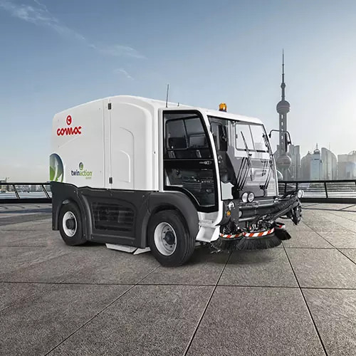 Comac je dizajnirao Twin Action sistem, jedinstvenu tehnologiju koja kombinuje snagu mehaničke akcije za prikupljanje većih ostataka i efikasnost vakuumske akcije za prašinu, pružajući odlične rezultate uz jednu mašinu u jednom prolazu. Moćni Twin Action sistem usisava čak i sitnu prašinu PM10 i PM2.5, uz smanjenje potrošnje vode, olakšavajući upotrebu čak i u najtežim uslovima.