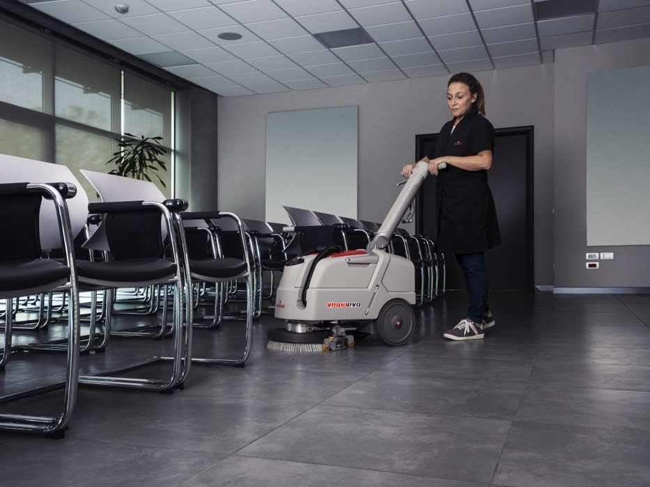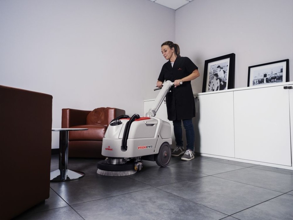 Vispa EVO je profesionalna mašina za pranje podova pogodna za održavanje površina do 1300 m² i dostupna je u verziji na baterijski pogon.