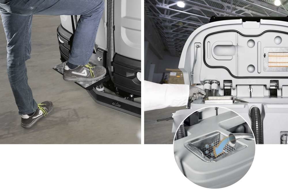 Kombinuje pranje i suvo čišćenje u jednom prolazu, omogućavajući dubinsko čišćenje i sakupljanje manjih čestica otpada u isto vreme. Robusna konstrukcija i izdržljivi materijali garantuju dugotrajnu pouzdanost, dok intuitivni 7” ekran u boji omogućava lako upravljanje i izbor radnih programa.